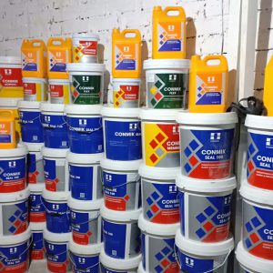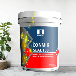 - Conmik Seal 100 là vật liệu chống thấm, chất kết nối 2 thành phần chất lỏng chưa polyme và thành phần bột chứa xi măng, chất làm đầy và cốt liệu. Dùng khi trộn 2 thành phần lại với nhau có thể dùng lăn (như lăn sơn) trên bề mặt tường, bê tông…