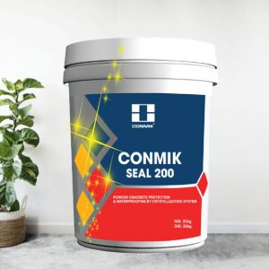 - Conmik Seal 200 là sản phẩm chống thấm mạnh mẽ với khả năng tự kết hợp với xi măng và vôi tạo ra tinh thể không thấm nước giúp trám vào các khe co ngót công trình như tường, bê tông… đến 0,5mm. Đây là là một sản phẩm chống thấm bền vững cho bất kỳ công trình xây dựng nào.