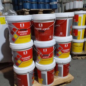 - Sơn Tường Đứng Conmik Acrylic là vật liệu xây dựng có chứa copolymer acrylic styrene một thành phần với tác dụng trám vết nứt và mối nối trên tường, mái, trần nhà. Sau thi công Conmik Acrylic khô tạo thành lớp phủ chống thấm, bền bỉ rất tin cậy. Conmik Acrylic xử lý triệt để chống thấm cho các tấm bê tông đổ sẵn và các loại mái bao gồm mái kẽm, amiang kẽm, xi măng, gạch bê tông, tấm lợp mái…v.v